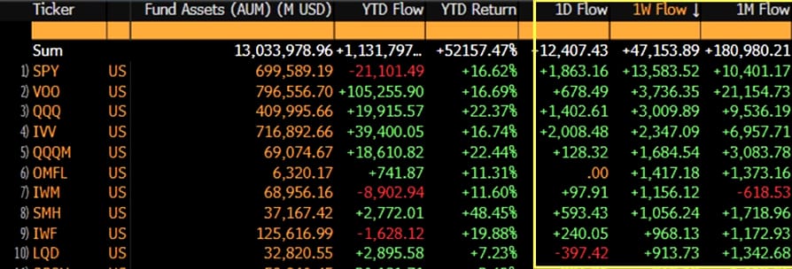 Despite the sell-off, ETF buyers remain in Buy-the-dip mode. Inflows were still positive on the week, in fact $13bn net went into SPY (S&P500) alone. As long as the dip buyers are still playing, this can still be considered a pullback, rather than a reversal.