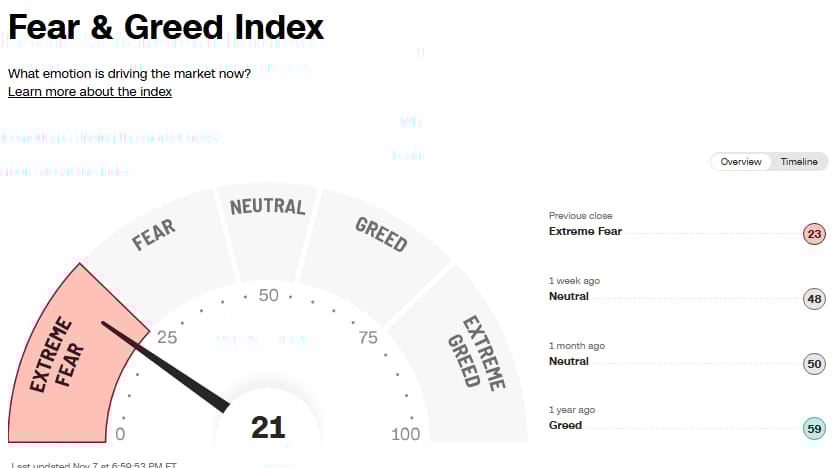 A horror show for big tech last week, and the biggest down week for the Nasdaq since April. Lots of talk of an AI bubble, even in the mainstream media, so this remains an interesting setup for contrarians, but these trades donβt come without risk. We can still get much more extreme from here.