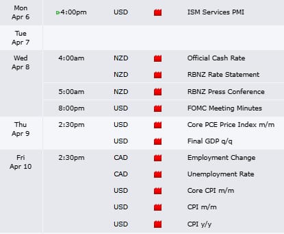 Here are this week’s red folder news events. Inflation numbers dropping on Friday (CPI) as well as FOMC minutes Wednesday, however events in Iran will be driving markets this week. A potential 45 day ceasefire is being floated this morning. A very fluid situation.