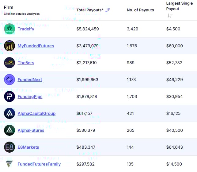 From Payout Junction, here are the firms who paid out the most over the last 7 days 🏆️.