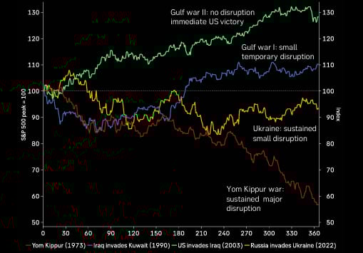 A mixed bag, although the trend for wars in the gulf is usually up. (S&P500)