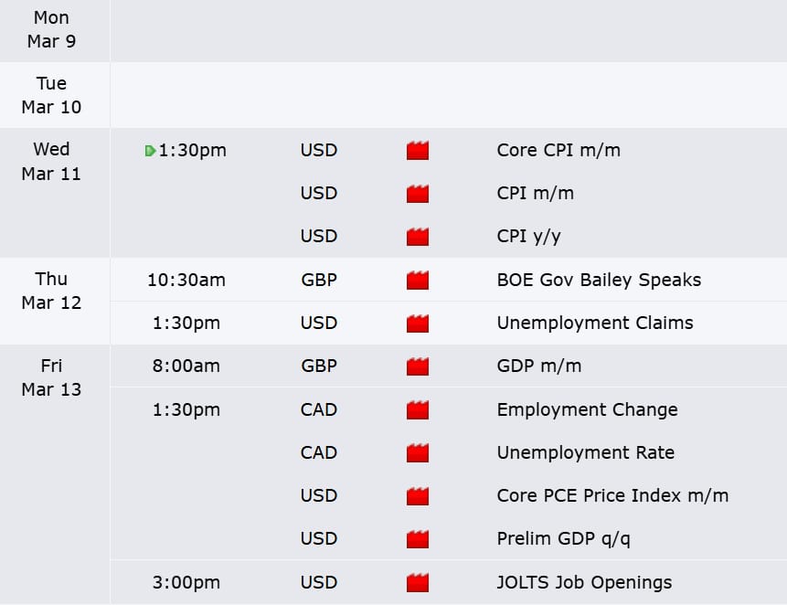 Here are this weekβs red folder news events. A quiet week on the calendar, however inflation numbers on Wednesday take on a new level of importance with oil prices spiking due to events in Iran. A hot inflation number here could really spook the markets.